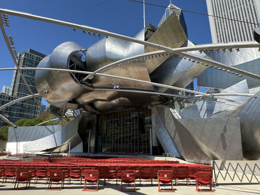 ミレニアム・パーク内にある屋外コンサートホールです。ジェイ・プリツカーはハイアットホテルの創業者であり、プリツカー賞の創設者でもあります。
