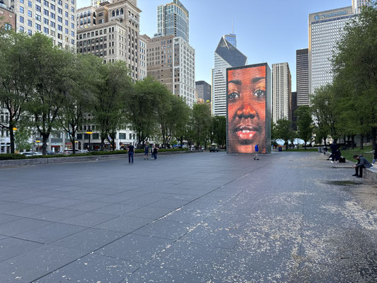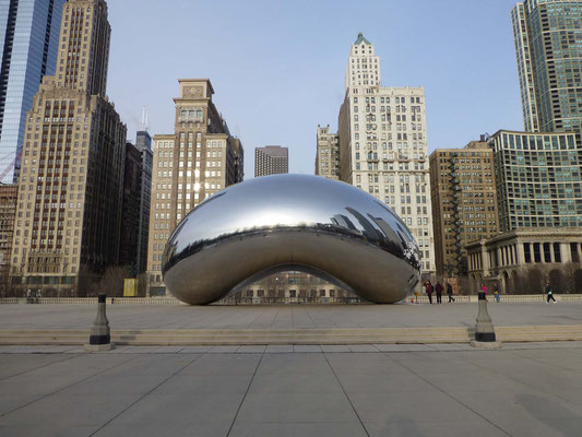 ミレニアム・パークはシカゴの観光名所の一つ。カプーアによるクラウド・ゲート(通称”豆”)を始めとする現代美術が点在する公園も見所です。